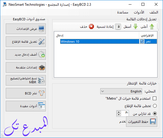 ويوفر لك البرنامج العديد من المميزات منها تعديل قائمة الأقلاع ، اذا كان عندك نظام تشغيل أخر بجانب الويندوز ويظهر لك عند تشغيل الجهاز الخاص بك ويجعلك تختار بين أي نظام ، يمكنك من خلال البرنامج اختيار النظام الذي تريد ازالة وقم بالضغط علي خيار ازالة وبعدها قم بالضغط علي حفط التغيرات وبعدها لن يظهر معك النظام الذي قمت بأزالتة مجددا.