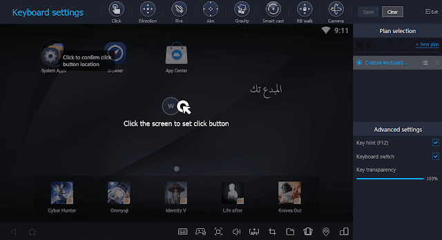 ويمكنك المحاكي من اضافة ازرار اللعب للتحكم في الالعاب التي تلعبها علي المحاكي.